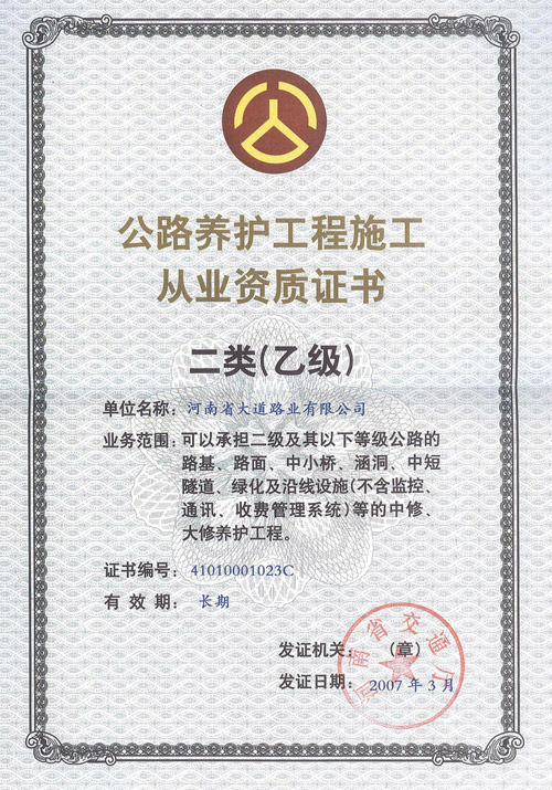最新公告: ·獲取更多資訊,請關(guān)注“河南省大道路業(yè)有限公司”微信公眾號